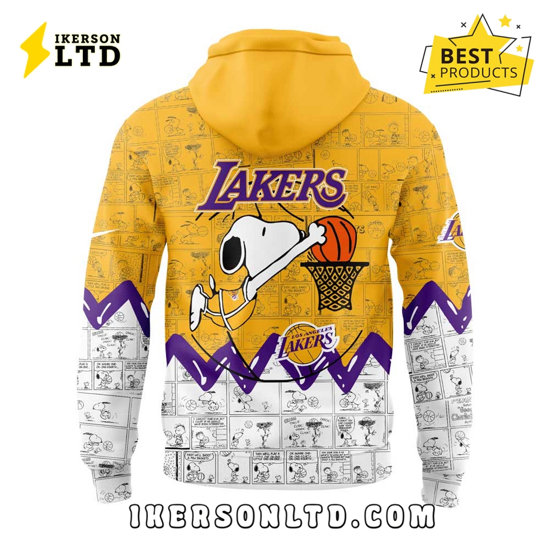 75th Anniversary of Peanuts Los Angeles Lakers Hoodie Details:
