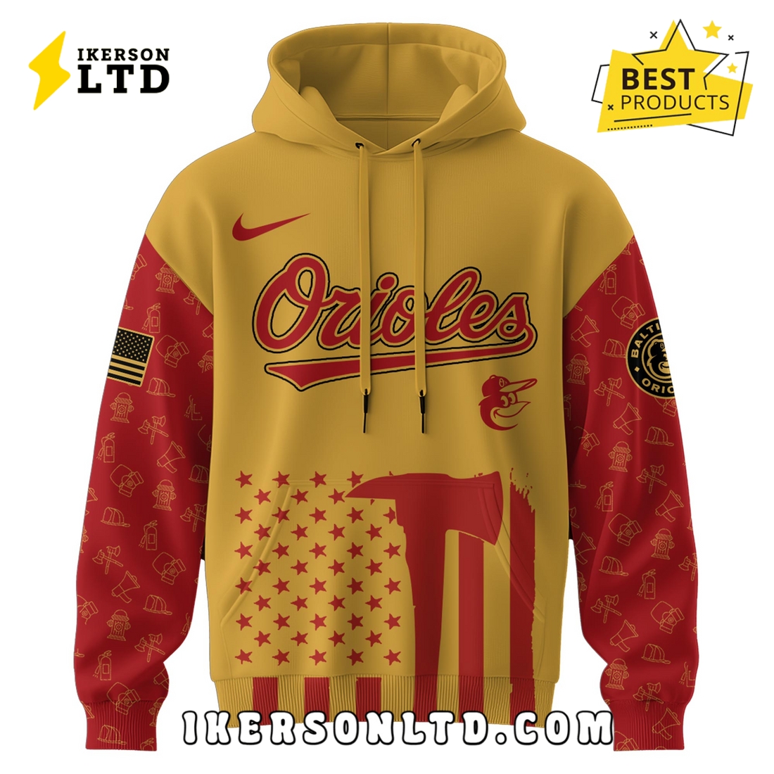 Baltimore Orioles MLB Firefighter Appreciation Night Hoodie Details: