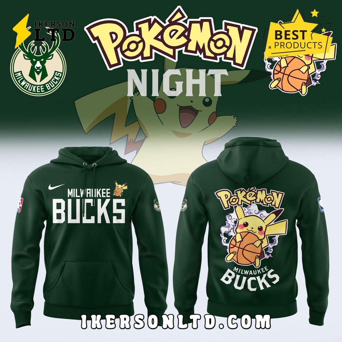 Milwaukee Bucks x 2025 Pokemon Night Hoodie Details: