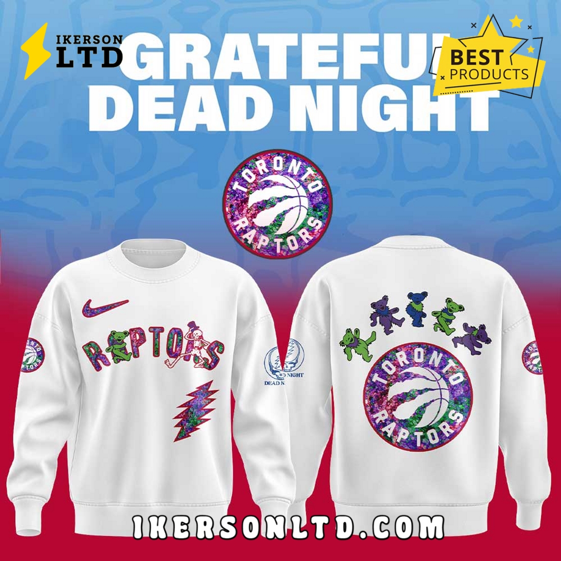 This exclusive New Toronto Raptors Grateful Dead Night Hoodie stands as a truly unique garment, meticulously designed for the discerning fan who appreciates both legendary basketball and iconic music. It fuses the vibrant energy of Toronto’s beloved NBA franchise with the timeless, psychedelic artistry of the Grateful Dead, creating a piece that transcends typical fan apparel. The core of its appeal lies in its stunning visual synthesis: a dynamic interplay where the ferocious Raptors dinosaur logo, often presented in an updated, modern aesthetic, seamlessly incorporates elements drawn from the Grateful Dead’s vast catalogue of instantly recognizable motifs. Imagine the raptor, perhaps rendered in a tie-dye pattern or adorned with the infamous “Steal Your Face” skull and lightning bolt, or even surrounded by the whimsical dancing bears, all while retaining its inherent team spirit. The color palette itself is a thoughtful blend, incorporating the Raptors’ signature red, black, and white (with potential hints of purple) into the Grateful Dead’s more expansive, often kaleidoscopic, spectrum, ensuring a harmonious and eye-catching design that avoids visual clutter.