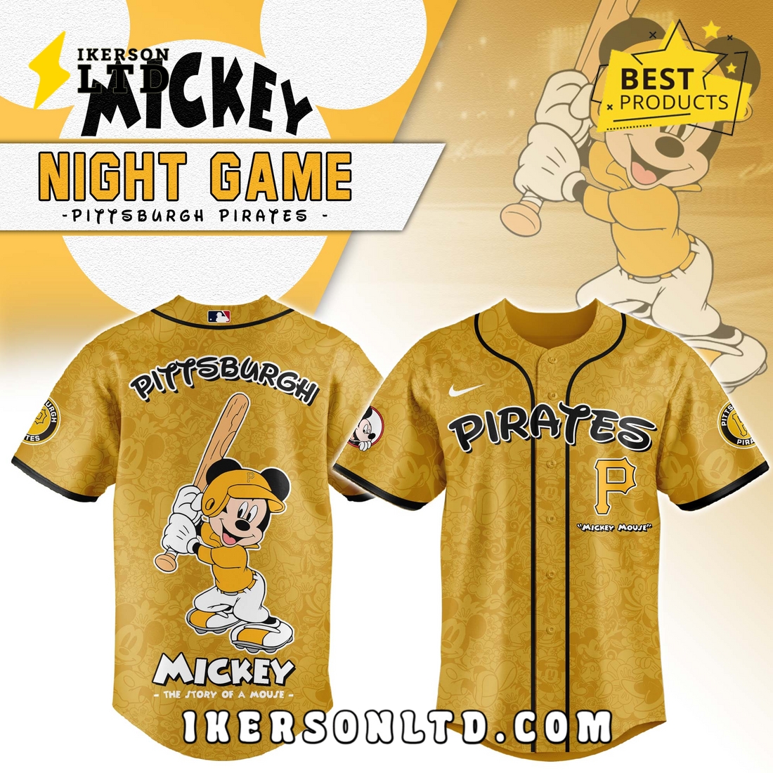 About Pittsburgh Pirates x Mickey Night Game Baseball Jersey